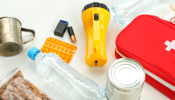 The essentials. Aim for three days’ worth of nonperishable food and bottled water, or as much as your loved one can manage carrying. Add a flashlight with extra batteries, a first-aid kit, travel-size toiletries, and manual can opener. Pack a change of clothes, socks, a warm layer, and an emergency blanket.